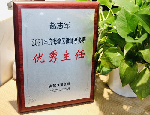 赵志军主任被海淀区司法局评为“2021年度海淀区律师事务所优秀主任”